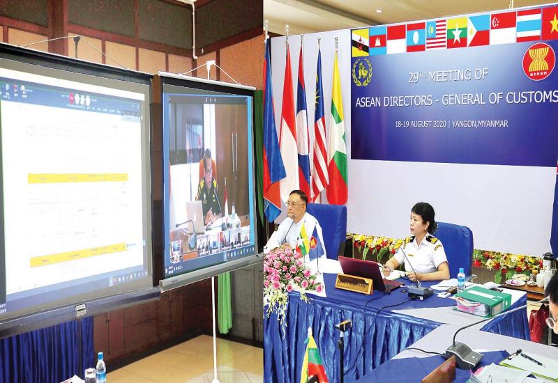 (၂၉)ကြိမ်မြောက် အာဆီယံအကောက်ခွန် ညွှန်ကြားရေးမှူးချုပ်များ အစည်းအဝေး ဒုတိယနေ့ကို ယနေ့နံနက် ၈ နာရီတွင် ဗီဒီယိုကွန်ဖရင့်ဖြင့် ကျင်းပရာ စီမံကိန်း၊ ဘဏ္ဍာရေးနှင့် စက်မှုဝန်ကြီးဌာန အကောက်ခွန်ဦးစီးဌာန ညွှန်ကြားရေးမှူးချုပ် ဦးကျော်ထင်က ရန်ကုန်မြို့မှ ပါဝင်၍ အာဆီယံအကောက်ခွန် သဘာပတိအဖြစ် ဆောင်ရွက်သည်။
