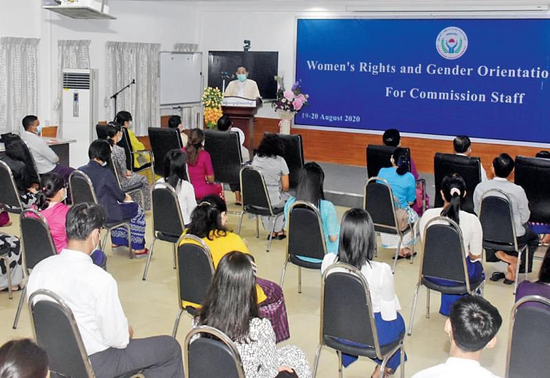 မြန်မာနိုင်ငံ အမျိုးသားလူ့အခွင့်အရေး ကော်မရှင်နှင့် Triangle Women Organization တို့ ပူးပေါင်းပြီး Women’s Rights and Gender Orientation Training အလုပ်ရုံ သင်တန်းဖွင့်ပွဲကို ယနေ့ နံနက် ၉နာရီ ခွဲက ရန်ကုန်မြို့ ၆ မိုင်ခွဲရှိ မြန်မာနိုင်ငံ အမျိုးသားလူ့အခွင့်အရေး ကော်မရှင် ရုံး၌ ပြုလုပ်သည်။
