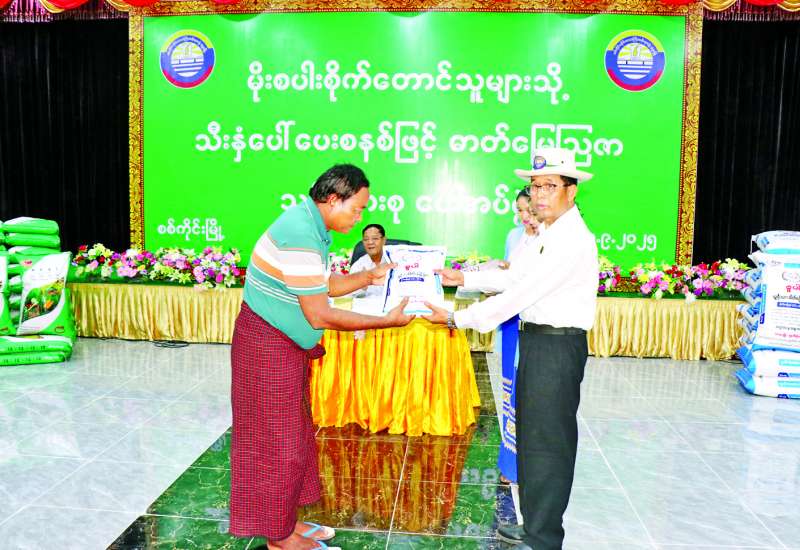စစ်ကိုင်းမြို့နယ်အတွင်း နိုင်ငံ့စီးပွားမြှင့်တင်ရေးရန်ပုံငွေဖြင့် အကျုံးမဝင်သော မိုးစပါးစိုက်တောင်သူများသို့ သီးနှံပေါ်ပေးစနစ်ဖြင့် ဓာတ်မြေဩဇာသွင်းအားစုပေးအပ်ပွဲ အခမ်းအနားကို ယနေ့နံနက်ပိုင်းက စစ်ကိုင်းမြို့ မြို့တော်ခန်းမ၌ ကျင်းပရာ အခမ်းအနားသို့ သမဝါယမနှင့်ကျေးလက်ဖွံ့ဖြိုးရေးဝန်ကြီးဌာန ပြည်ထောင်စုဝန်ကြီး ဦးလှမိုး၊ စစ်ကိုင်းတိုင်းဒေသကြီးဝန်ကြီးများနှင့် တာဝန်ရှိသူများ၊ ဌာနဆိုင်ရာတာဝန်ရှိသူများ တက်ရောက်ကြသည်။