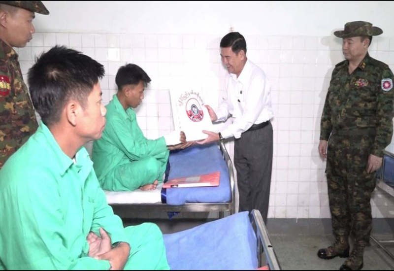 ရခိုင်ပြည်နယ်၊ စစ်တွေမြို့ရှိ တပ်မတော်ဆေးရုံ၌ တက်ရောက်ဆေးကုသမှု ခံယူလျက်ရှိသော အရာရှိ၊ စစ်သည်များနှင့် မိသားစုဝင်များအား ယနေ့နံနက်ပိုင်းတွင် ပြည်နယ်ဝန်ကြီးချုပ် ဦးထိန်လင်း၊ အနောက်ပိုင်းတိုင်းစစ်ဌာနချုပ်တိုင်းမှူး ဗိုလ်ချုပ်ကျော်စွာဦး၊ ပြည်နယ်ဝန်ကြီးများနှင့် မြန်မာနိုင်ငံရဲတပ်ဖွဲ့မှ တာဝန်ရှိသူများက သွားရောက်ကြည့်ရှု၍ တစ်ဦးချင်း၏ရောဂါဖြစ်ပွားမှုများ၊ ဆေးဝါးကုသပေးထားမှုနှင့် ကျန်းမာရေးတိုးတက်ကောင်းမွန်မှုအခြေအနေများကို ရင်းရင်းနှီးနှီးမေးမြန်း အားပေးစကားပြောကြားပြီး အာဟာရဖြည့်စားသောက်ဖွယ်ရာများ ပေးအပ်သည်။