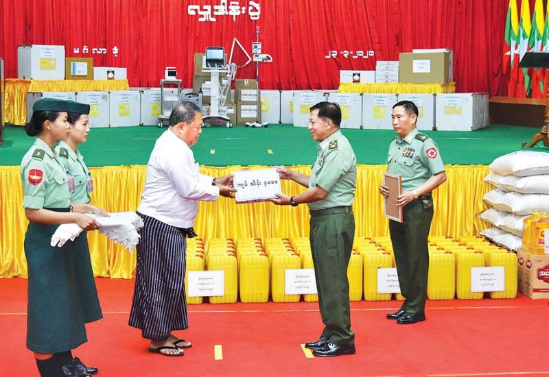 COVID-19 ရောဂါကုသရေးအထောက်အကူပြု ဆေးနှင့်ဆေးပစ္စည်းများ လှူဒါန်းခြင်း အခမ်းအနားကို ယနေ့ နံနက်ပိုင်းတွင် ရန်ကုန်တိုင်းဒေသ ကြီး မင်္ဂလာဒုံမြို့နယ်ရှိ တပ်မတော် အရိုးရောဂါ အထူးကုဆေးရုံကြီး၌ ကျင်းပသည်။