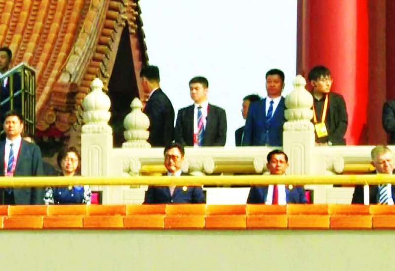 တရုတ်ပြည်သူ့သမ္မတနိုင်ငံ သမ္မတ H.E. Mr. Xi Jinping ၏ ဖိတ်ကြားချက်အရ ပေကျင်းမြို့သို့ ရောက်ရှိနေသည့် ပြည်ထောင်စုသမ္မတမြန်မာနိုင်ငံတော်ယာယီသမ္မတ နိုင်ငံတော်လုံခြုံရေးနှင့် အေးချမ်းသာယာရေးကော်မရှင်ဥက္ကဋ္ဌ ဗိုလ်ချုပ်မှူးကြီး မင်းအောင်လှိုင်သည် ယနေ့နံနက်ပိုင်းတွင် ပေကျင်းမြို့၊ Tian'anmen ရင်ပြင်၌ ကျင်းပပြုလုပ်သည့် တရုတ်ပြည်သူများ၏ ဂျပန်ခုခံတော်လှန်ရေးစစ်ပွဲနှင့် ကမ္ဘာ့ဖက်ဆစ်ဆန့်ကျင်ရေးစစ်ပွဲအောင်နိုင်ခြင်း နှစ် (၈၀) ပြည့် အထိမ်းအမှတ်စစ်ရေးပြအခမ်းအနားသို့ ပါဝင်တက်ရောက်သည်။