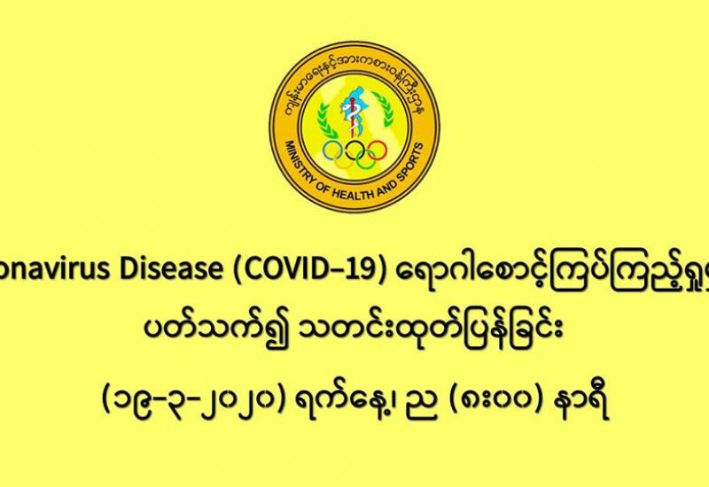 ၁။ ကျန်းမာရေးနှင့်အားကစားဝန်ကြီးဌာနသည် ကမ္ဘာ့နိုင်ငံများတွင် ကူးစက်ပျံ့နှံ့လျက်ရှိသည့် COVID-19 လတ်တလောအသက်ရှူလမ်းကြောင်းဆိုင်ရာ ရောဂါဖြစ်ပွားမှုဖြစ်စဉ်နှင့်ပတ်သက်၍ ရောဂါစောင့်ကြပ်ကြည့်ရှုခြင်း လုပ်ငန်းများအား အပြည်ပြည်ဆိုင်ရာ ဝင်ပေါက်၊ ထွက်ပေါက်ဂိတ် များတွင်လည်းကောင်း၊ ဆေးရုံအခြေပြုအဖြစ်လည်းကောင်း၊ ပြည်သူလူထုအခြေပြု စောင့်ကြပ် ကြည့်ရှုခြင်းလုပ်ငန်းများဖြင့်လည်းကောင်း၊ ပုဂ္ဂလိကဆေးရုံများနှင့် ပူးပေါင်း၍လည်းကောင်း ဆောင်ရွက်လျက်ရှိပါသည်။