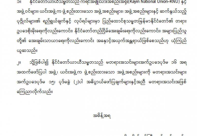 ၁။ စိုက်ပျိုးရေး၊ မွေးမြူရေးနှင့်ဆည်မြောင်းဝန်ကြီးဌာန၊ ငါးလုပ်ငန်းဦးစီးဌာနသည် မြန်မာ့ပင်လယ်ငါးလုပ်ငန်းရေပြင်အတွင်း ငါးဖမ်းလုပ်ငန်းလုပ်ကိုင်ဆောင်ရွက်နေသော နိုင်ငံသားပိုင်ကမ်းဝေးငါးဖမ်းရေယာဉ်များနှင့် ကမ်းနီးငါးဖမ်းရေယာဉ်များအနေဖြင့် မုတ်သုံရာသီအတွင်း ရာသီဥတုဆိုးရွားချိန်များတွင် လှိုင်းဒဏ်၊ လေဒဏ်များခိုလှုံနိုင်ရန်အတွက် အောက်ဖော်ပြပါတည်နေရာများ၌ ရာသီဥတုခိုလှုံနိုင်ပါကြောင်းကို (၁၄-၅-၂၀၂၅) ရက်စွဲပါ ညွှန်ကြားချက်အမှတ်၊ ၂/၂၀၂၅ ဖြင့် ထုတ်ပြန်ပေးထားပြီး ဖြစ်ပါသည်-