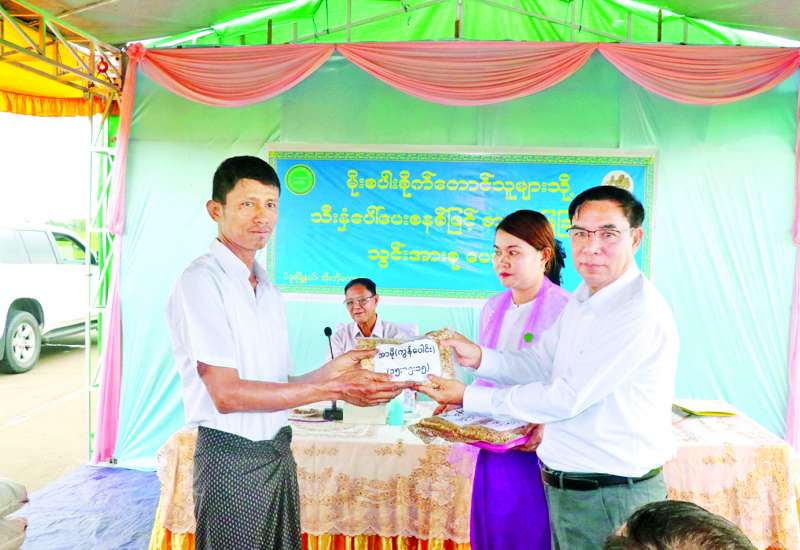 ပဲခူးမြို့နယ်အတွင်း နိုင်ငံ့စီးပွားမြှင့်တင်ရေး ရန်ပုံငွေဖြင့်အကျုံးမဝင်သော မိုးစပါးစိုက်တောင်သူများအား သီးနှံပေါ်ပေးစနစ်ဖြင့် ဓာတ်မြေဩဇာ သွင်းအားစုပေးအပ်ပွဲအခမ်းအနားကို ယနေ့နံနက်ပိုင်းက ပဲခူးမြို့နယ် အိုးဘိုကျေးရွာ ယာယီရှင်းလင်းဆောင်၌ကျင်းပရာ သမဝါယမနှင့်ကျေးလက်ဖွံ့ဖြိုးရေးဝန်ကြီးဌာန ပြည်ထောင်စုဝန်ကြီး ဦးလှမိုး၊ ပဲခူးတိုင်း ဒေသကြီးဝန်ကြီးချုပ် ဦးမျိုးဆွေဝင်းနှင့် တာဝန်ရှိသူများ တက်ရောက်ကြသည်။