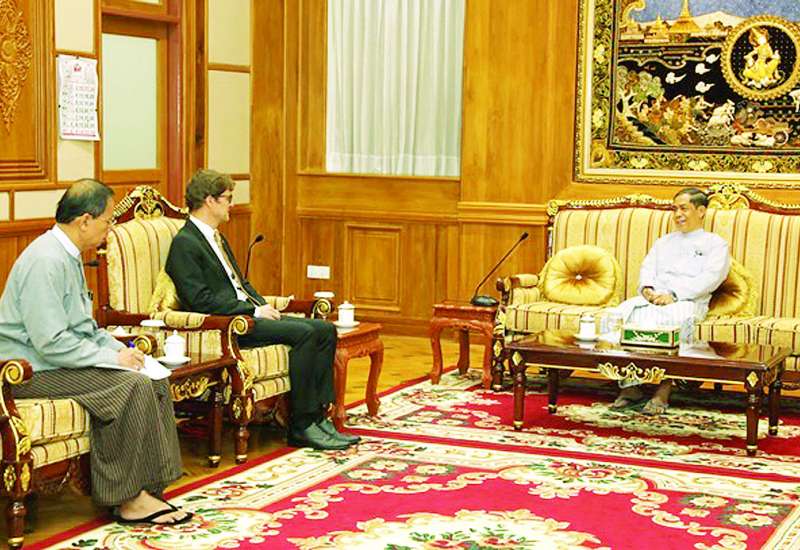 နိုင်ငံတော်သမ္မတရုံးဝန်ကြီးဌာန(၂) ပြည်ထောင်စုဝန်ကြီး ဦးကိုကိုလှိုင်သည် အပြည်ပြည်ဆိုင်ရာကြက်ခြေနီကော်မတီ(ICRC) ၏ မြန်မာနိုင်ငံဆိုင်ရာ ဌာနေကိုယ်စားလှယ်ဖြစ်သူ Mr. Arnaud de Baecque အား ယနေ့နံနက်ပိုင်းတွင် နေပြည်တော်ရှိ အမျိုးသားကာကွယ်ရေးနှင့်လုံခြုံရေးကောင်စီရုံးဧည့်ခန်းမ၌ လက်ခံတွေ့ဆုံသည်။