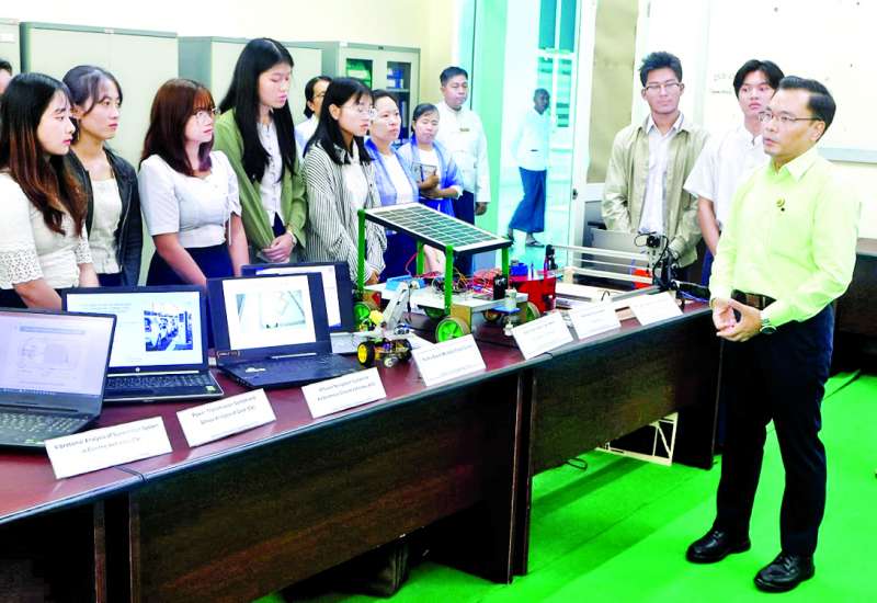သိပ္ပံနှင့်နည်းပညာဝန်ကြီးဌာန ဒုတိယဝန်ကြီး ဒေါက်တာအောင်ဇေယျသည် သြဂုတ် ၁၅ ရက် နံနက်ပိုင်းက ပြင်ဦးလွင်မြို့ရှိ နည်းပညာတက္ကသိုလ် (ရတနာပုံဆိုက်ဘာစီးတီး) ပင်မစာသင်ဆောင်၌ ခင်းကျင်းပြသထားသည့် မဟာဌာနကျောင်းသား ကျောင်းသူများ၏ သုတေသနပရောဂျက်ပြပွဲတွင် ဆိုလာနည်းပညာ၊ စက်ရုပ်နည်းပညာ၊ စွန့်ပစ်ပစ္စည်း မှထုတ်ကုန်များ ပြန်လည်ထုတ်ယူသည့်နည်းပညာ၊ ဆက်စပ်ဌာနများနှင့် ပူးပေါင်းဆောင်ရွက်နေသည့် AI သုံး ကျန်းမာရေးနှင့် မွေးမြူရေးဆိုင်ရာ သုတေသနပရောဂျက်များမှရလဒ်များကို ကြည့်ရှုစစ်ဆေးသည်။