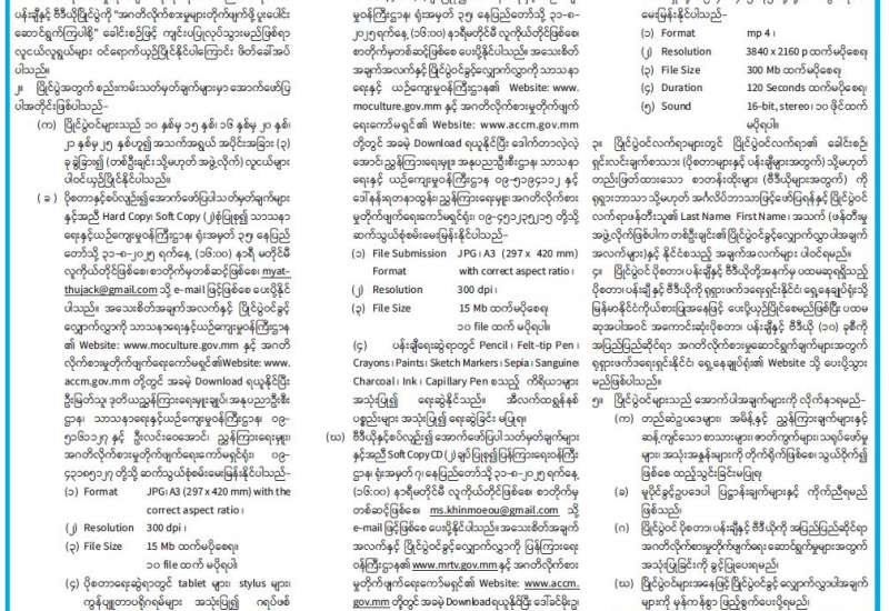 အဂတိလိုက်စားမှုတိုက်ဖျက်ရေး အသိပညာပေးဆိုင်ရာ ပိုစတာ၊ ပန်းချီနှင့် ဗီဒီယိုပြိုင်ပွဲသို့ ဝင်ရောက်ယှဉ်ပြိုင်နိုင်ရေး ဖိတ်ခေါ်ခြင်း