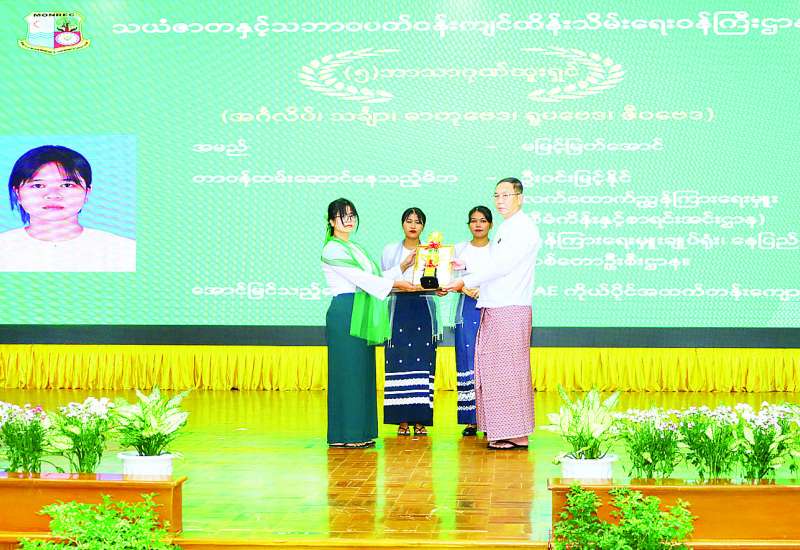 ၂၀၂၄ - ၂၀၂၅ ပညာသင်နှစ် တက္ကသိုလ်ဝင်စာမေးပွဲတွင် ထူးချွန်စွာအောင်မြင်ခဲ့ကြသော သယံဇာတနှင့် သဘာဝပတ်ဝန်းကျင်ထိန်းသိမ်းရေးဝန်ကြီးဌာနရှိ ဝန်ထမ်းများ၏ သားသမီးများအား ဂုဏ်ပြုချီးမြှင့်ပွဲအခမ်းအနားကို ယနေ့နံနက်ပိုင်းက နေပြည်တော် တက္ကသိုလ်များနယ်မြေ(ရေဆင်း)ရှိ သစ်တောနှင့်ပတ်ဝန်းကျင်ဆိုင်ရာတက္ကသိုလ် ဘွဲ့နှင်းသဘင်ခန်းမ၌ကျင်းပရာ ပြည်ထောင်စုဝန်ကြီး ဦးခင်မောင်ရီ၊ ဒုတိယဝန်ကြီး ဦးမင်းသူ၊ တာဝန်ရှိသူများ၊ ဂုဏ်ထူးရ ကျောင်းသား ကျောင်းသူများနှင့် မိဘများတက်ရောက်ကြသည်။