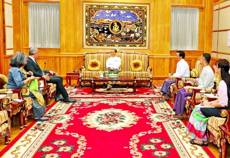 လူဝင်မှုကြီးကြပ်ရေးနှင့် ပြည်သူ့အင်အားဝန်ကြီးဌာန ပြည်ထောင်စုဝန်ကြီး ဦးမြင့်ကြိုင်သည် မြန်မာနိုင်ငံဆိုင်ရာ ကုလသမဂ္ဂယာယီဌာနေညှိနှိုင်းရေးမှူး/ လူသားချင်းစာနာထောက်ထားမှုဆိုင်ရာ ယာယီညှိနှိုင်းရေးမှူးနှင့် ကုလသမဂ္ဂကမ္ဘာ့စားနပ်ရိက္ခာ အစီအစဉ် (WFP)၏ မြန်မာနိုင်ငံဆိုင်ရာဌာနေကိုယ်စားလှယ်ဖြစ်သူ Mr. Michael Dunford နှင့်အဖွဲ့အား ယနေ့နံနက် ၁၀ နာရီတွင် နေပြည်တော်ရှိ အဆိုပါဝန်ကြီးဌာန ပြည်ထောင်စုဝန်ကြီး၏ဧည့်ခန်းမ၌ လက်ခံတွေ့ဆုံသည်။