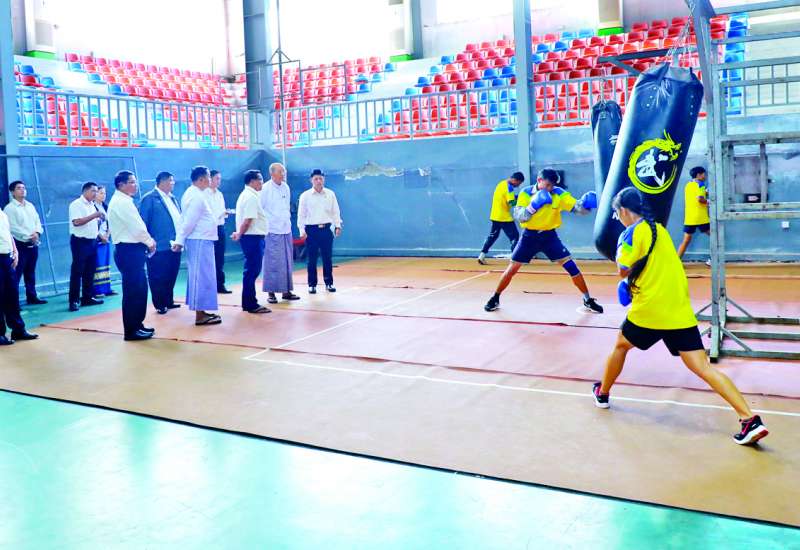 အားကစားနှင့် လူငယ်ရေးရာဝန်ကြီးဌာနနှင့် ဟိုတယ်နှင့်ခရီးသွားလာရေးဝန်ကြီးဌာန ပြည်ထောင်စုဝန်ကြီး Jeng Phang နော်တောင်သည် ဒုတိယဝန်ကြီး ဦးဇင်မင်းထက်၊ တာဝန်ရှိသူများနှင့်အတူ ယနေ့နံနက်ပိုင်းက (၃၃) ကြိမ်မြောက်အရှေ့တောင် အာရှအားကစားပြိုင်ပွဲ ဝင်ရောက်ယှဉ်ပြိုင်ရန် နေပြည်တော် အားကစားလေ့ကျင့်ရေးစခန်း(Gold Camp)၌ စခန်းဝင်လေ့ကျင့်လျက်ရှိသည့် လက်ဝှေ့နှင့် အလေးမအားကစားသမားများ၏ လေ့ကျင့်နေမှုများကို ကြည့်ရှုအားပေးသည်။