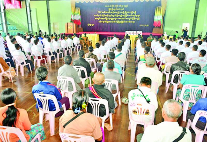 နိုင်ငံတော်အစိုးရသည် PDF အပါအဝင် အဖွဲ့အစည်းအမျိုးမျိုးအမည်ခံ၍ လက်နက်ကိုင်ဆန့်ကျင်လျက်ရှိသည့် အဖွဲ့အစည်းများအတွင်း ရောက်ရှိနေသူများအား ဥပဒေဘောင်အတွင်းသို့ ပြန်လည်ဝင်ရောက်ရန် ဖိတ်ခေါ်၍ ဥပဒေဘောင်အတွင်းသို့ ပြန်လည်ဝင်ရောက်လာကြသူများကိုလည်း လိုအပ်သည့် ကူညီပံ့ပိုးမှုများ ဆောင်ရွက်ပေးလျက်ရှိရာ နိုင်ငံတော်နှင့်တပ်မတော်၏ ငြိမ်းချမ်းရေးလုပ်ငန်းစဉ်များကို နားလည်သဘောပေါက်လာသည့် တိုင်းရင်းသားလက်နက်ကိုင်အဖွဲ့များမှ အဖွဲ့ဝင်များနှင့် PDF အမည်ခံအဖွဲ့မှ အဖွဲ့ဝင် အမျိုးသား ၁၀၀ နှင့် အမျိုးသမီးလေးဦး စုစုပေါင်း ၁၀၄ ဦးသည် လက်နက်ခဲယမ်းများနှင့်အတူ ဥပဒေဘောင်အတွင်းသို့ ထပ်မံဝင်ရောက်လာကြသည်။