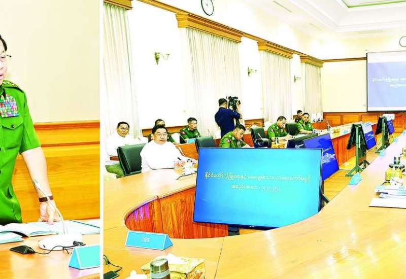 နိုင်ငံတော်လုံခြုံရေးနှင့် အေးချမ်းသာယာရေးကော်မရှင်အစည်းအဝေးကို ယနေ့နံနက်ပိုင်းတွင် ကျင်းပပြုလုပ်ရာ နိုင်ငံတော်လုံခြုံရေးနှင့် အေးချမ်းသာယာရေးကော်မရှင်ဥက္ကဋ္ဌ ဗိုလ်ချုပ်မှူးကြီး မင်းအောင်လှိုင် တက်ရောက်အမှာစကား ပြောကြားသည်။