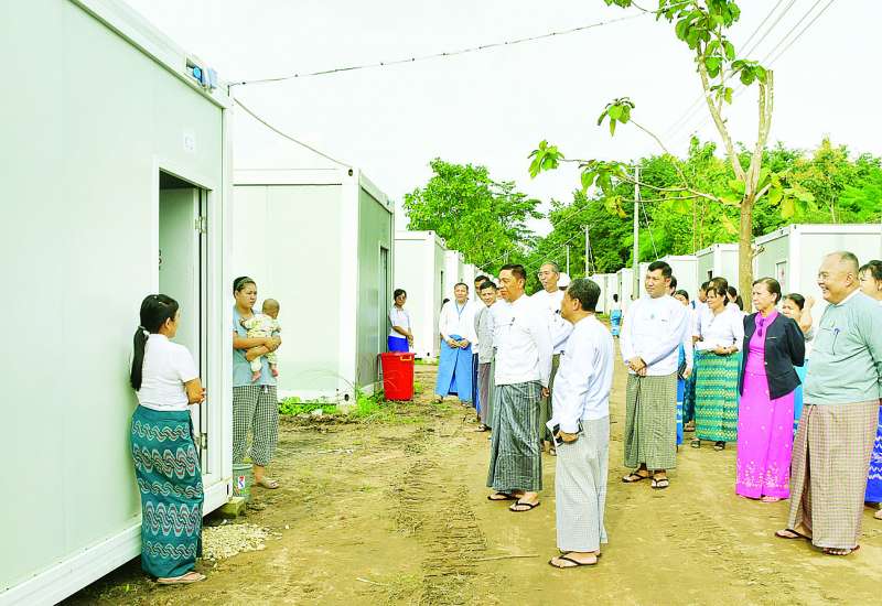 လူမှုဝန်ထမ်း၊ ကယ်ဆယ်ရေးနှင့်ပြန်လည်နေရာ ချထားရေးဝန်ကြီးဌာန ပြည်ထောင်စုဝန်ကြီး ဒေါက်တာစိုးဝင်းသည် တာဝန်ရှိသူများနှင့်အတူ ယမန်နေ့က ရုံးအမှတ်(၂၃)ဝင်းအတွင်း၌ ဝန်ထမ်းများ ယာယီနေထိုင်ရန် အမျိုးသားသဘာဝဘေး အန္တရာယ်ဆိုင်ရာစီမံခန့်ခွဲမှုကော်မတီက ခွဲဝေချထားပေးသော Container House များတွင် နေထိုင်သည့် ဝန်ထမ်းများအား တွေ့ဆုံအားပေးစကားပြောကြားသည်။