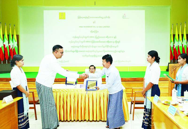 စွမ်းအင်ဝန်ကြီးဌာန၊ မြန်မာ့ရေနံနှင့်သဘာဝဓာတ်ငွေ့ လုပ်ငန်းနှင့် HNA Myanmar Oil & Gas Ltd. တို့အကြား ကုန်းတွင်းလုပ်ကွက် IOR-4 (ပြည်ဒေသ) ဧရိယာ - ၁ နှင့် IOR-6 (မြန်အောင်ဒေသ) ဧရိယာ- ၃ တို့အတွက်လည်းကောင်း၊ မြန်မာ့ရေနံနှင့်သဘာဝဓာတ်ငွေ့လုပ်ငန်းနှင့် Future Engineering & Gold, Mining Co., ltd. တို့အကြား IOR-7 (ရွှေပြည်သာဒေသ) ဧရိယာ - ၂ အတွက်လည်းကောင်း ရေနံအထွက်တိုးရေးလုပ်ငန်းများ ဆောင်ရွက်နိုင်ရန်အတွက် တိုးတက်ထွက်ရှိလာသော ရေနံနှင့်သဘာဝဓာတ်ငွေ့ထုတ်လုပ်မှုအပေါ် ခွဲဝေခံစားသည့်စာချုပ်များ လက်မှတ်ရေးထိုးပွဲအခမ်းအနားကို ယနေ့တွင် နေပြည်တော်ရှိ စွမ်းအင်ဝန်ကြီးဌာန၌ ကျင်းပသည်။