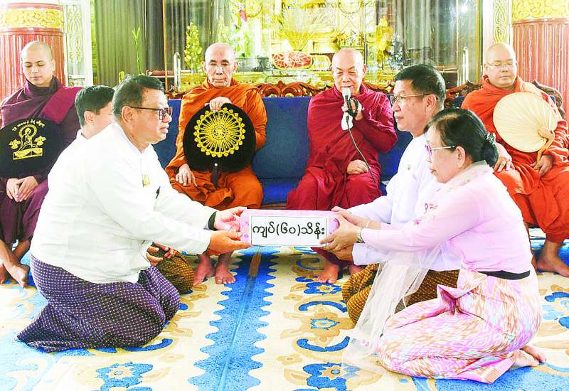 မင်းတုန်းမင်းတရားကြီး တည်ထားတော်မူခဲ့သည့် အောင်မြေသာစံမြို့နယ်ရှိ မဟာလောက မာရဇိန် ကုသိုလ်တော်မြတ်စွာဘုရား မဟာရံတံတိုင်းအတွင်းရှိ မန္တလေးငလျင်ကြီးကြောင့် ထိခိုက်ပြိုကျပျက်စီးခဲ့သည့် မုခ်ဦးနှင့်ကျောက်စာ ဓမ္မစေတီတော်များ ပြန်လည်ပြုပြင်မွမ်းမံရန် အလှူငွေပေးအပ်လှူဒါန်းပွဲအခမ်းအနားကို ယနေ့နံနက်ပိုင်းက အဆိုပါ မဟာလောကမာရဇိန် ကုသိုလ်တော်မြတ်စွာဘုရား၌ ကျင်းပသည်။