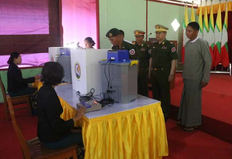 မြန်မာအီလက်ထရောနစ်မဲပေးစက်(MEVM)နှင့် စပ်လျဉ်း၍ ရှင်းလင်းပြသခြင်းနှင့် မဲပေးစက်လက်တွေ့သရုပ်ပြမဲပေးခြင်းကို ယနေ့နံနက်ပိုင်းတွင် အနောက်ပိုင်းတိုင်းစစ်ဌာနချုပ်၊ စစ်တွေတပ်နယ်ရှိ မေဃဝတီခန်းမ၌ပြုလုပ်ရာ တိုင်းမှူး ဗိုလ်ချုပ်ကျော်စွာဦးနှင့် တာဝန်ရှိသူများ၊ အရာရှိ၊ စစ်သည်၊ မိသားစုများ တက်ရောက်ကြသည်။
