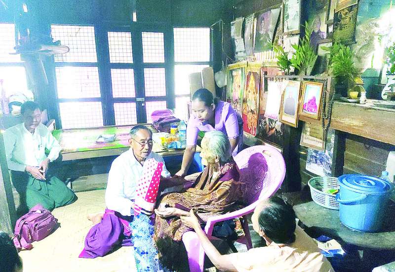 နိုင်ငံတော်စီမံအုပ်ချုပ်ရေးကောင်စီအဖွဲ့ဝင် မန်းငြိမ်းမောင်သည် ယနေ့မွန်းလွဲပိုင်းတွင် ပန်းတနော်မြို့ အနောက်ပိုင်းရပ်ကွက်နေ အသက်(၁၀၉)နှစ် အဘွားဒေါ်စောကြည် နေအိမ်သို့သွားရောက်၍ အလှူပစ္စည်းများ ပေးအပ်သည်။