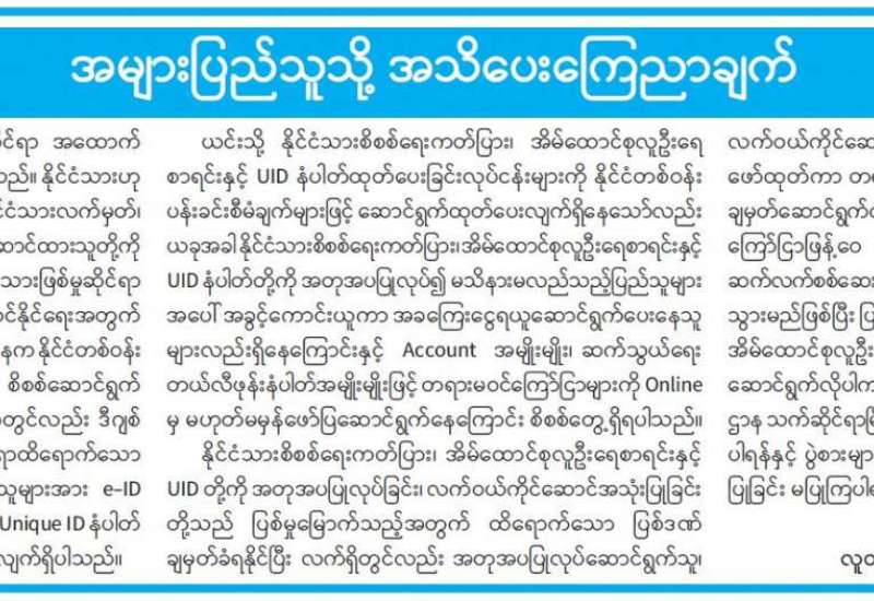 နိုင်ငံတော်စီမံအုပ်ချုပ်ရေးကောင်စီသည် PDF အပါအဝင် အဖွဲ့အစည်းအမျိုးမျိုး အမည်ခံ၍ လက်နက်ကိုင်ဆန့်ကျင်လျက်ရှိသည့် အဖွဲ့အစည်းများအတွင်း ရောက်ရှိနေသူများအား ဥပဒေဘောင်အတွင်းသို့ ပြန်လည်ဝင်ရောက်ရန် ဖိတ်ခေါ်၍ ဥပဒေဘောင်အတွင်းသို့ ပြန်လည်ဝင်ရောက်လာကြသူများကိုလည်း လိုအပ်သည့် ကူညီပံ့ပိုးမှုများ ဆောင်ရွက်ပေးလျက်ရှိသည်။