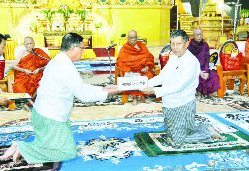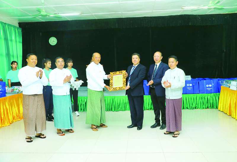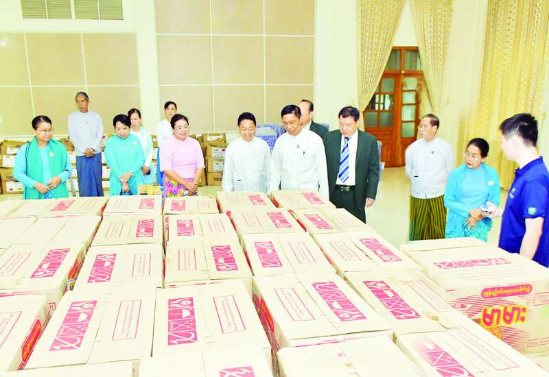 မြန်မာ - တရုတ်ပူးပေါင်းဆက်ဆံရေးအသင်းမှ အားကစားနှင့်လူငယ်ရေးရာဝန်ကြီးဌာန ငလျင်ဘေးသင့်ဝန်ထမ်းများအတွက် ထောက်ပံ့ပစ္စည်းများ ပေးအပ်လှူဒါန်းပွဲကို ယမန်နေ့ မွန်းလွဲပိုင်းတွင် နေပြည်တော် အားကစားလေ့ကျင့်ရေးစခန်း (Gold Camp) ရှိ ဘက်စုံသုံးခန်းမ၌ ကျင်းပခဲ့သည်။