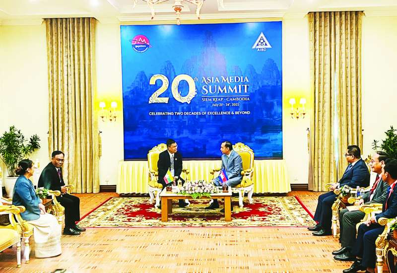 ကမ္ဘောဒီးယားနိုင်ငံ ဆီယမ်ရိမြို့ Sokha Siem Reap Resort & Convention Center ၌ ဇူလိုင် ၂၁ ရက် မွန်းလွဲပိုင်းက 20th Asia Media Summit ၏ အကြိုဆွေးနွေးပွဲဖြစ်သည့် Youth Digital Empowerment Workshop and Girls in ICT Day Cambodia 2025 ကို ကျင်းပရာ ပြန်ကြားရေးဝန်ကြီးဌာန ဒုတိယဝန်ကြီး ဦးရဲတင့် တက်ရောက်သည်။