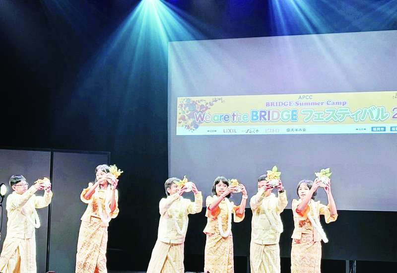 ဂျပန်နိုင်ငံ ဖူကူအိုကာမြို့၌ ဇူလိုင် ၁၂ ရက်မှ ၂၀ ရက်အထိ ကျင်းပသည့် (၃၇) နှစ်မြောက် နွေရာသီအပြည်ပြည်ဆိုင်ရာ လူငယ်များ တွေ့ဆုံပွဲ- ၂၀၂၅ (BRIDGE Summer Camp - 2025) သို့ မြန်မာကျောင်းသားလူငယ် ကိုယ်စားလှယ်ခြောက်ဦးက Junior Ambassador များအဖြစ် ပါဝင်တက်ရောက်၍ ယဉ်ကျေးမှုဖလှယ်ရေးအစီအစဉ်များ ဆောင်ရွက်ခဲ့ကြသည်။