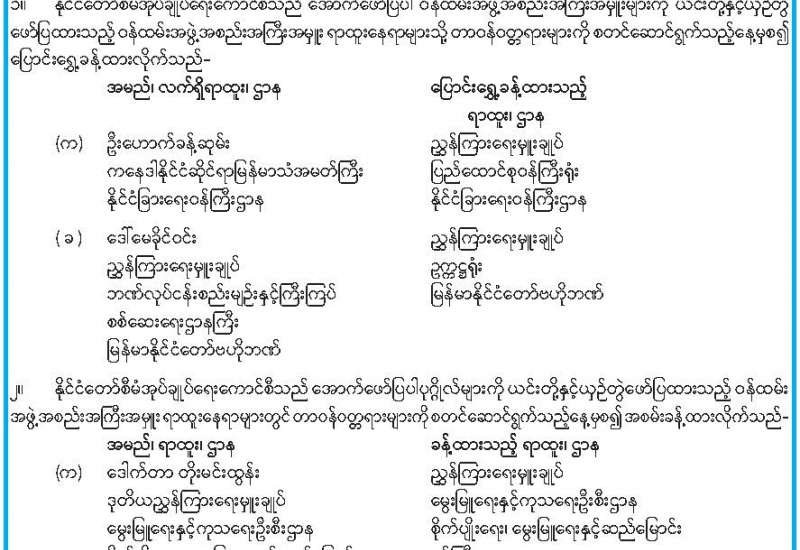 ဝန်ထမ်းအဖွဲ့အစည်းအကြီးအမှူးများ ပြောင်းရွှေ့ခန့်ထားခြင်းနှင့် ဝန်ထမ်းအဖွဲ့အစည်းအကြီးအမှူးများ ခန့်ထားခြင်း
