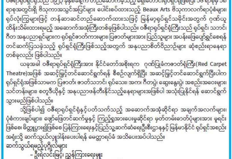 ပြန်ကြားရေးဝန်ကြီးဌာန ပြည်ထောင်စုဝန်ကြီး ဦးမောင်မောင်အုန်း သည် ရုပ်ရှင်ထုတ်လုပ်သူလုပ်ငန်းရှင်များနှင့် ယနေ့မွန်းလွဲပိုင်းတွင် ရန်ကုန်မြို့ ဗဟန်းမြို့နယ် ပြန်ကြားရေးနှင့်ပြည်သူ့ဆက်ဆံရေးဦးစီးဌာန ရုပ်ရှင်မြှင့်တင်ရေးဌာနခွဲ အစည်းအဝေးခန်းမ၌ တွေ့ဆုံ၍ ရုပ်ရှင်ကဏ္ဍဖွံ့ဖြိုးတိုးတက်ရေးအတွက် ညှိနှိုင်းဆွေးနွေးသည်။