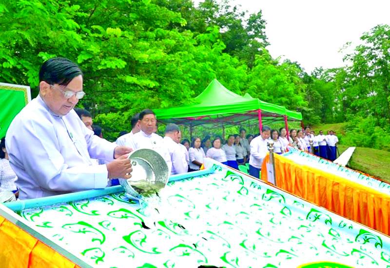 သယံဇာတနှင့်သဘာဝပတ်ဝန်းကျင်ထိန်းသိမ်းရေးဝန်ကြီးဌာန ၂၀၂၅ ခုနှစ် ဒုတိယအကြိမ် မိုးရာသီစုပေါင်းသစ်ပင်စိုက်ပျိုးပွဲကို ပြည်ထောင်စုနယ်မြေ နေပြည်တော်တပ်ကုန်းမြို့နယ် အောက်ဆင်သေကြိုးဝိုင်းအကွက်အမှတ် ၃၀ ရှိ ဂေဟစနစ်ဖြည့် တင်းရေးစိုက်ခင်း ဧက ၁၀၀အတွင်း ကျင်းပရာ ပြည်ထောင်စုဝန်ကြီး ဦးခင်မောင်ရီ၊ ဒုတိယဝန်ကြီး ဦးမင်းသူ၊ အမြဲတမ်းအတွင်းဝန်နှင့် ဌာနဆိုင်ရာတာဝန်ရှိသူများ၊ ဝန်ကြီးဌာနမှအရာထမ်း၊ အမှုထမ်းများ၊ သစ်တောနှင့် ပတ်ဝန်းကျင်ဆိုင်ရာတက္ကသိုလ်မှ ဆရာဆရာမများနှင့် ကျောင်းသား ကျောင်းသူများ၊ ကျောက်မျက်အသင်းမှ တာဝန်ရှိသူများတက်ရောက်ကြပြီး ပြည်ထောင်စုဝန်ကြီးက အထိမ်းအမှတ် ပျဉ်းကတိုးပင်ကို သတ်မှတ်နေရာတွင် ဦးဆောင်စိုက်ပျိုးကာ ဒုတိယဝန်ကြီးနှင့် တက်ရောက်လာသူများက အထိမ်းအမှတ်သစ်ပင်များကို သတ်မှတ်နေရာများတွင် ဆက်လက်စိုက်ပျိုးပေးကြသည်။