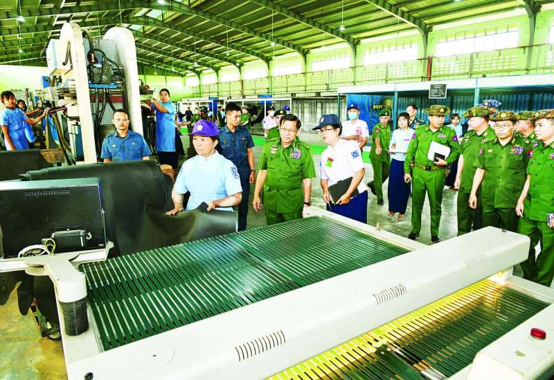 နိုင်ငံတော်စီမံအုပ်ချုပ်ရေးကောင်စီဥက္ကဋ္ဌ တပ်မတော်ကာကွယ်ရေးဦးစီးချုပ် ဗိုလ်ချုပ်မှူးကြီး မင်းအောင်လှိုင်သည် ခရီးစဉ်တွင်လိုက်ပါလာသည့် ကာကွယ်ရေးဦးစီးချုပ်ရုံးမှ အဆင့်မြင့်တပ်မတော်အရာရှိကြီးများ၊ အလယ်ပိုင်းတိုင်းစစ်ဌာနချုပ် တိုင်းမှူးနှင့် တာဝန်ရှိသူများလိုက်ပါ၍ ယနေ့မွန်းလွဲပိုင်းတွင် မိတ္ထီလာတပ်နယ်ရှိ တပ်မတော်သားရေစက်ရုံ (မိတ္ထီလာ)သို့ သွားရောက်၍ လုပ်ငန်းဆောင်ရွက်နေမှု အခြေအနေများကို ကြည့်ရှုစစ်ဆေးသည်။
