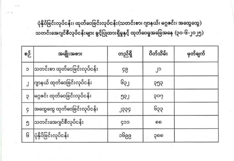 ပုံနှိပ်ခြင်းလုပ်ငန်း၊ ထုတ်ဝေခြင်းလုပ်ငန်း (သတင်းစာ၊ ဂျာနယ်၊ မဂ္ဂဇင်း၊ အထွေထွေေ) သတင်းအေဂျင်စီလုပ်ငန်းများ ခွင့်ပြုထားရှိမှုနှင့် ထုတ်ဝေမှုအခြေအနေ (၃၀-၆-၂၀၂၅)