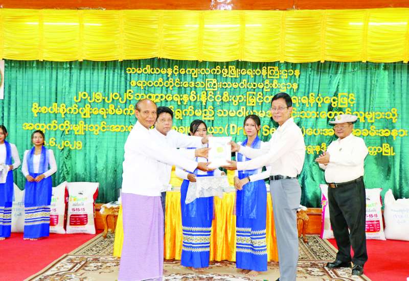 ဧရာဝတီတိုင်းဒေသကြီး မြောင်းမြမြို့နယ်၊ ဝါးခယ်မမြို့နယ်နှင့် အိမ်မဲမြို့နယ်အတွင်းရှိ စိုက်ပျိုးရေးသမဝါယမအသင်း ၁၄ သင်းနှင့် လပွတ္တာမြို့နယ်နှင့် မော်လမြိုင်ကျွန်းမြို့နယ်အတွင်းရှိ စိုက်ပျိုးရေးသမဝါယမအသင်း ရှစ်သင်းတို့အတွက် ငွေကျပ်သန်းပေါင်း ၁၅၁၈ သန်း တန်ဖိုးရှိ အထွက်တိုးစပါးမျိုးများ၊ သွင်းအားစုများ၊ မျိုးစေ့ချကိရိယာများ ပေးအပ်ပွဲအခမ်းအနားကို ယနေ့နံနက်ပိုင်းတွင် လပွတ္တာမြို့ရွေးနဒီခန်းမ၌ကျင်းပရာ သမဝါယမနှင့်ကျေးလက်ဖွံ့ဖြိုးရေးဝန်ကြီးဌာန ဒုတိယဝန်ကြီး ဦးမြင့်စိုး၊ တိုင်းဒေသကြီး လမ်းပန်းဆက်သွယ်ရေးဝန်ကြီး ဦးနေမျိုးအောင်နှင့် ဌာနဆိုင်ရာ တာဝန်ရှိသူများ၊ မြို့မိမြို့ဖများ၊ သမဝါယမအသင်းသား တောင်သူများ တက်ရောက်ကြသည်။
