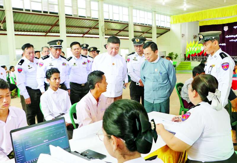 လူဝင်မှုကြီးကြပ်ရေးနှင့် ပြည်သူ့အင်အားဝန်ကြီးဌာန ပြည်ထောင်စုဝန်ကြီး ဦးမြင့်ကြိုင်သည် မွန်ပြည်နယ်ဝန်ကြီးချုပ် ဦးအောင်ကြည်သိန်း၊ တာဝန်ရှိသူများနှင့်အတူ ယမန်နေ့မွန်းလွဲပိုင်းက မော်လမြိုင်မြို့ အမှတ်(၇)အခြေခံပညာအထက်တန်းကျောင်း၌ နိုင်ငံသားစိစစ်ရေးကတ်ပြား မရှိသေးသူများ၊ လဲလှယ်လျှောက်ထားသူ ပြည်သူများကို ပန်းခင်းစီမံချက်အဆင့်(၃)ဖြင့် နိုင်ငံသားကတ်ပြားစိစစ်ဆောင်ရွက်ပေးနေမှုကို လှည့်လည်ကြည့်ရှုကာ ဒေသခံပြည်သူများအား လိုအပ်သည်များ ညှိနှိုင်းဆောင်ရွက်ပေးသည်။