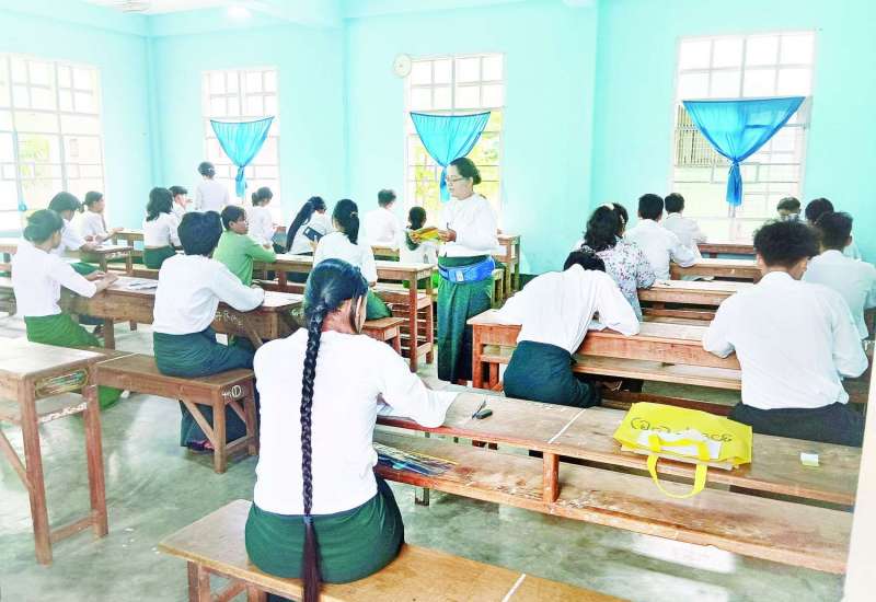 ပညာရေးဝန်ကြီးဌာန ဒုတိယဝန်ကြီး ဒေါက်တာဇော်မြင့်နှင့် ဦးနေမျိုးလှိုင်သည် ပညာရေးဝန်ကြီးဌာနရှိ ဦးစီးဌာနများမှ ညွှန်ကြားရေးမှူးချုပ်များ၊ နေပြည်တော်ကောင်စီနယ်မြေ ပညာရေးမှူးနှင့်အတူ ယနေ့နံနက်ပိုင်းတွင် နေပြည်တော်ကောင်စီနယ်မြေ ဇေယျာသီရိမြို့နယ် အမှတ် (၁) အခြေခံပညာအထက်တန်းကျောင်းရှိ တက္ကသိုလ်ဝင်စာမေးပွဲစာစစ်ဌာနသို့ ရောက်ရှိကာ တက္ကသိုလ်ဝင်စာမေးပွဲပထမနေ့ မြန်မာစာဘာသာ ဖြေဆိုနေမှုကို လှည့်လည်ကြည့်ရှုအားပေးသည်။