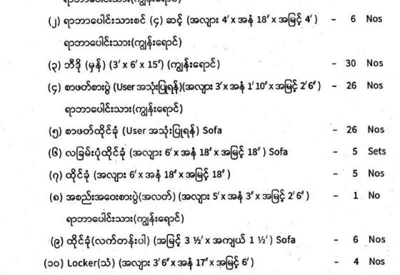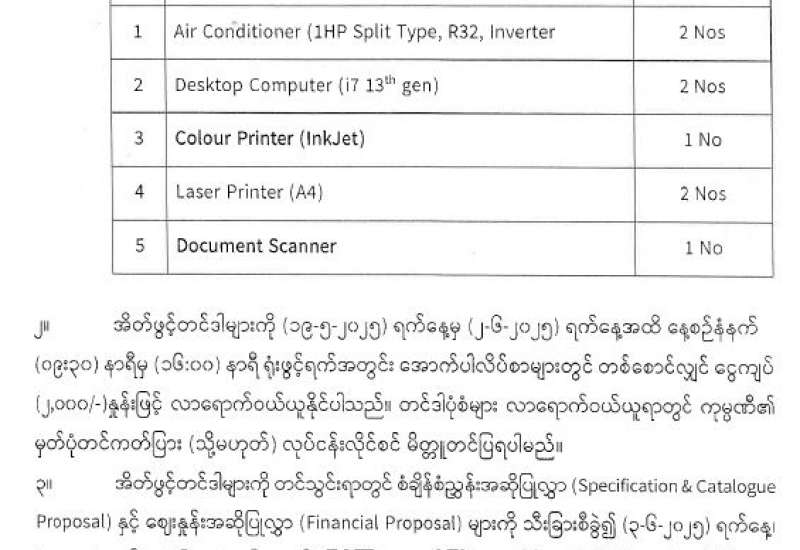 ရုံးသုံး/လုပ်ငန်းသုံးစက်ကိရိယာများ ဝယ်ယူရန်အတွက် အိတ်ဖွင့်တင်ဒါခေါ်ယူခြင်း