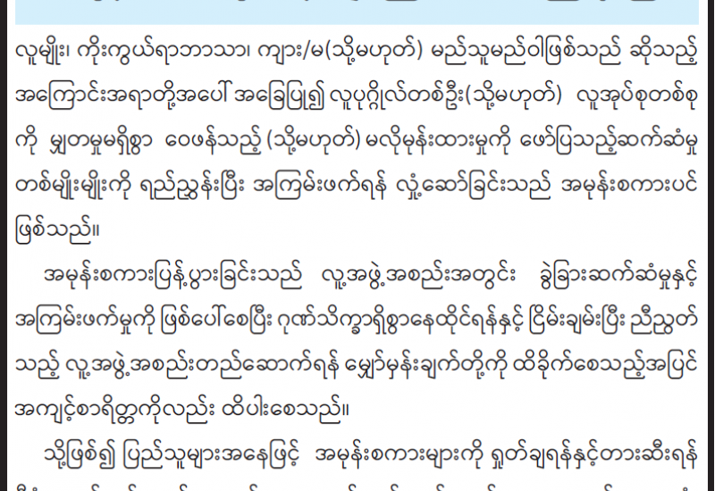မည်သည့်အခကြေးငွေမျှ ကောက်ခံခြင်း/လက်ခံခြင်းမပြုရ။