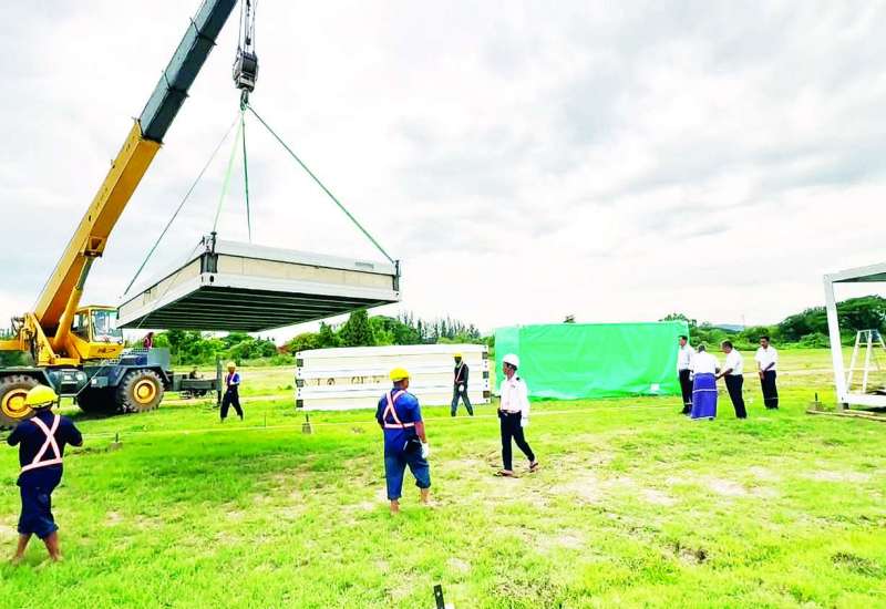 နိုင်ငံတော်စီမံအုပ်ချုပ်ရေးကောင်စီအဖွဲ့ဝင် ဒုတိယဝန်ကြီးချုပ်နှင့်ပို့ဆောင်ရေးနှင့်ဆက်သွယ် ရေးဝန်ကြီးဌာန ပြည်ထောင်စုဝန်ကြီး ဗိုလ်ချုပ်ကြီး မြထွန်းဦးသည် ယနေ့နံနက်ပိုင်းတွင် နေပြည်တော်ကောင်စီနယ်မြေအတွင်း အမျိုးသားသဘာဝဘေးအန္တရာယ်ဆိုင်ရာ စီမံခန့်ခွဲမှုကော်မတီက စီစဉ်ခွဲဝေပေးထားသည့် Modular House များကို ဝန်ကြီးဌာနအောက်ရှိ မြန်မာ့မီးရထားနှင့် ကုန်းလမ်းပို့ဆောင်ရေးညွှန်ကြားမှုဦးစီးဌာနပိုင် မြေနေရာများ၌ ငလျင်ဘေးသင့်ဝန်ထမ်းမိသားစုများ နေထိုင်နိုင်ရန်အတွက် တည်ဆောက်နေမှုလုပ်ငန်းခွင်များသို့ လှည့်လည်ကြည့်ရှုစစ်ဆေးသည်။