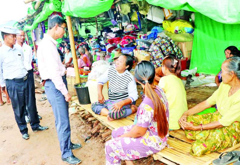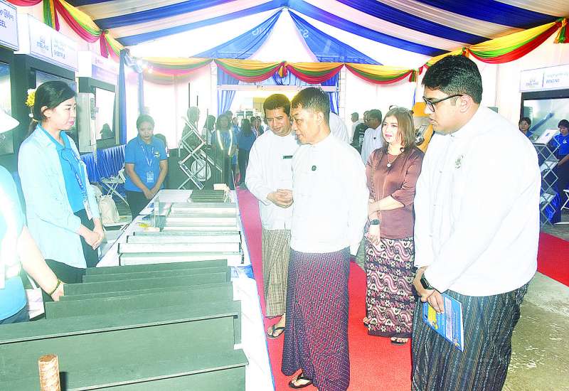 စီးပွားရေးနှင့်ကူးသန်းရောင်းဝယ်ရေးဝန်ကြီးဌာန ပြည်ထောင်စုဝန်ကြီး ဦးထွန်းအုံသည် ယနေ့နံနက်ပိုင်းတွင် မန္တလေးငလျင်ကြီးလှုပ်ခတ်ခဲ့ပြီးနောက် ပြန်လည်ထူထောင်ရေးလုပ်ငန်းစဉ်များ ဆောင်ရွက်ရာတွင် လိုအပ်သည့် သံ၊ သံမဏိ၊ ဘိလပ်မြေနှင့် ဆောက်လုပ်ရေးလုပ်ငန်းသုံးပစ္စည်းများကို အများပြည်သူများ ဈေးနှုန်းမှန်ကန်စွာနှင့် အရည်အသွေးပြည့်မီစွာ ဝယ်ယူနိုင်ရေး ရည်ရွယ်၍ နေပြည်တော် ဥပ္ပါတသန္တိစေတီတော်တပေါင်းကွင်း၌ ကျင်းပပြုလုပ်လျက်ရှိသည့် သံ၊ သံမဏိ၊ ဘိလပ်မြေနှင့် ဆောက်လုပ်ရေးလုပ်ငန်းသုံးပစ္စည်းများ ရောင်းချပေးလျက်ရှိသည့် အရောင်းပြခန်းများကို လှည့်လည်ကြည့်ရှုအားပေးသည်။