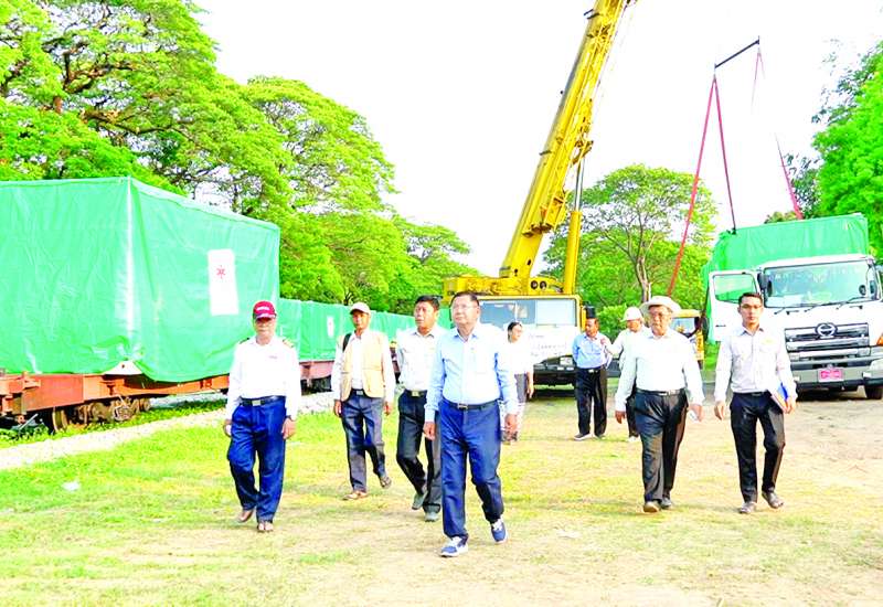 ဆောက်လုပ်ရေးဝန်ကြီးဌာန ဒုတိယဝန်ကြီး ဦးမျိုးမြင့်သည် လူမှုဝန်ထမ်း၊ ကယ်ဆယ်ရေးနှင့်ပြန်လည်နေရာချထားရေးဝန်ကြီးဌာန ဒုတိယဝန်ကြီး ဦးစိုးကြည်နှင့်အတူ ယနေ့မွန်းလွဲပိုင်းတွင် ရန်ကုန်မြို့ သီလဝါဆိပ်ကမ်းမှတစ်ဆင့် နေပြည်တော် ရွာတော်ဘူတာသို့ ထပ်မံရောက်ရှိလာသည့် Modular (Prefabricated) Office/House များကို သက်ဆိုင်ရာဝန်ကြီးဌာနများသို့ ဖြန့်ခွဲတပ်ဆင်တည်ဆောက်နေသည့်အခြေအနေကို သွားရောက်ကြည့်ရှုစစ်ဆေးသည်။