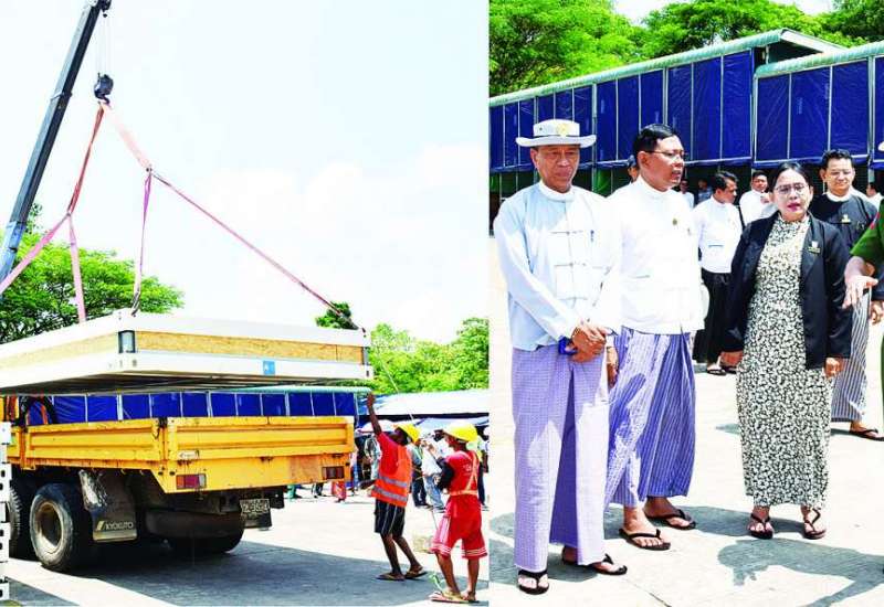 ဥပဒေရေးရာဝန်ကြီးဌာန ပြည်ထောင်စုဝန်ကြီးနှင့် ပြည်ထောင်စုရှေ့နေချုပ် ဒေါက်တာသီတာဦး၊ ဒုတိယဝန်ကြီးနှင့် ဒုတိယရှေ့နေချုပ်၊ ညွှန်ကြားရေးမှူးချုပ်များ၊ ဒုတိယအမြဲတမ်းအတွင်းဝန်နှင့် တာဝန်ရှိသူများသည် ယနေ့နံနက်ပိုင်းက ရုံးအမှတ် (၂၅) ဥပဒေရေးရာဝန်ကြီးဌာန ယာယီဝန်ထမ်းအိမ်ရာဝင်း၌ ဝန်ထမ်းများ နေထိုင်နိုင်ရန် တရုတ်နိုင်ငံမှ ကူညီထောက်ပံ့သည့် Container House များ တပ်ဆင်တည်ဆောက်ခြင်းလုပ်ငန်းခွင်ကို ကြည့်ရှုစစ်ဆေးသည်။