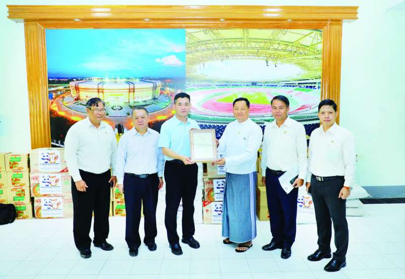 မြန်မာနိုင်ငံဆိုင်ရာ တရုတ်ပြည်သူ့သမ္မတနိုင်ငံ သံရုံးမှ အားကစားနှင့်လူငယ်ရေးရာဝန်ကြီးဌာနတွင် အသုံးပြုရန်အတွက် ရုံးလုပ်ငန်းသုံးပစ္စည်းများနှင့် ထောက်ပံ့ပစ္စည်းများ ပေးအပ်လှူဒါန်းပွဲအခမ်းအနားကို ယနေ့ နံနက်ပိုင်းတွင် နေပြည်တော် ရုံးအမှတ် (၃၁) ရှိ အားကစားနှင့်လူငယ်ရေးရာဝန်ကြီးဌာန ဧည့်တွေ့ခန်းမ၌ ကျင်းပသည်။