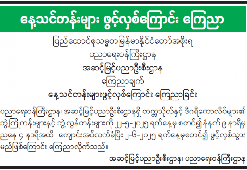နေ့သင်တန်းများ ဖွင့်လှစ်ကြောင်း ကြေညာ