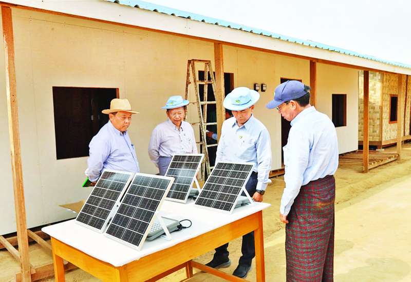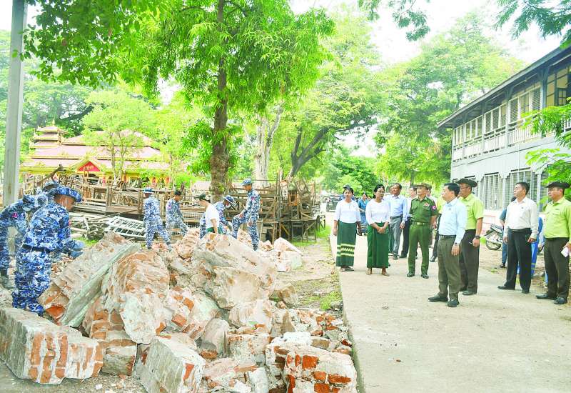 စိုက်ပျိုးရေး၊ မွေးမြူရေးနှင့်ဆည်မြောင်းဝန်ကြီးဌာန ပြည်ထောင်စုဝန်ကြီး ဦးမင်းနောင်သည် ယနေ့မွန်းလွဲပိုင်းတွင် ဇမ္ဗူသီရိမြို့နယ်ရှိ ဆည်မြောင်းနှင့်ရေအသုံးချမှု စီမံခန့်ခွဲရေးဦးစီးဌာနပိုင် မြေနေရာ၌ ငလျင်ဒဏ်သင့်ဝန်ထမ်းများအတွက် ယာယီအဆောက်အအုံ တည်ဆောက်နေမှုကို ကြည့်ရှုစစ်ဆေးသည်။