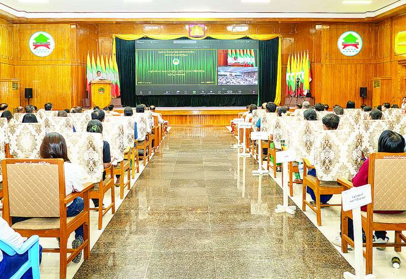 ၂၀၂၄ - ၂၀၂၅ ခုနှစ် ပညာသင်နှစ်တက္ကသိုလ်ဝင် စာမေးပွဲပြန်လည်ဖြေဆိုမည့် ကျောင်းသား ကျောင်းသူများအား တွေ့ဆုံအားပေးခြင်းနှင့် ထောက်ပံ့ငွေပေးအပ်ခြင်းအခမ်းအနားကို ယနေ့နံနက်ပိုင်းတွင် စက်မှုဝန်ကြီးဌာန ရုံးအမှတ်(၃၀)အစည်းအဝေးခန်းမ၌ ကျင်းပသည်။