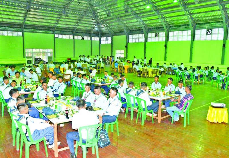 အခြေခံလေကြောင်းလူငယ်သင်တန်း အမှတ်စဉ်(၁/၂၀၂၅) (တောင်ကြီးစခန်း)၌ တက်ရောက်သင်ကြားလျက်ရှိသည့် သင်တန်းသား၊ သင်တန်းသူများအတွက် အထူးနေ့လယ်စာစားပွဲကို ယနေ့မွန်းလွဲပိုင်းတွင် အရှေ့ပိုင်းတိုင်းစစ်ဌာနချုပ် သံလွင်ခန်းမ၌ ပြုလုပ်ရာ တိုင်းမှူး ဗိုလ်ချုပ် ဇော်မင်းလတ်နှင့် အဖွဲ့ဝင်များ၊ ပြည်နယ်ဝန်ကြီးများ၊ သင်တန်းနည်းပြများ၊ သင်တန်းသား၊ သင်တန်းသူများနှင့် ဖိတ်ကြားထားသူများ တက်ရောက်ကြသည်။