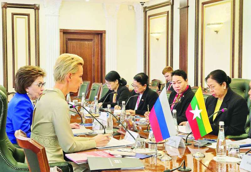 နိုင်ငံတော်စီမံအုပ်ချုပ်ရေးကောင်စီဥက္ကဋ္ဌ နိုင်ငံတော်ဝန်ကြီးချုပ် ဗိုလ်ချုပ်မှူးကြီး မင်းအောင်လှိုင်နှင့်အတူ ရုရှားဖက်ဒရေးရှင်းနိုင်ငံသို့ ရောက်ရှိနေသည့် ဇနီး ဒေါ်ကြူကြူလှ သည် ယနေ့ဒေသစံတော်ချိန် နံနက်ပိုင်းတွင် BRICS အမျိုးသမီးစီးပွားရေး မဟာမိတ်အဖွဲ့ရုရှားဖက်ဒရေးရှင်းနိုင်ငံဆိုင်ရာဥက္ကဋ္ဌ Ms. Anna Nesterova နှင့် ရုရှားဖက်ဒရေးရှင်းနိုင်ငံ ဖက်ဒရယ်ကောင်စီရုံး၌ တွေ့ဆုံဆွေးနွေးသည်။