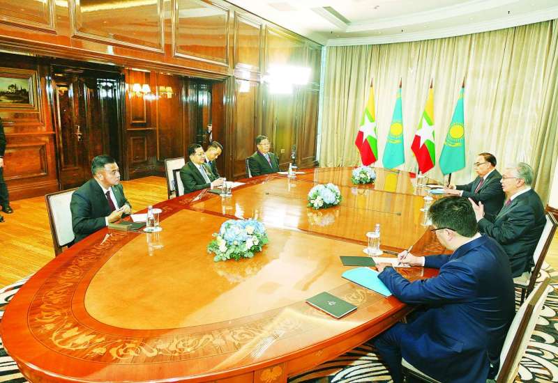ရုရှားဖက်ဒရေးရှင်းနိုင်ငံတွင် ကျင်းပပြုလုပ်မည့် ၁၉၄၁-၁၉၄၅ မဟာမျိုးချစ်စစ်ပွဲကြီးအောင်ပွဲ နှစ်(၈၀)ပြည့်အထိမ်းအမှတ် စစ်ရေးပြအခမ်းအနားသို့ တက်ရောက်ရန်အတွက် မော်စကိုမြို့သို့ ရောက်ရှိနေသည့် နိုင်ငံတော်စီမံအုပ်ချုပ်ရေးကောင်စီဥက္ကဋ္ဌ နိုင်ငံတော်ဝန်ကြီးချုပ် ဗိုလ်ချုပ်မှူးကြီး မင်းအောင်လှိုင်သည် ယနေ့ဒေသစံတော်ချိန် ညနေပိုင်းတွင် ကာဇတ်စတန်နိုင်ငံသမ္မတ H.E.Mr. Kassym-Jomart Tokayev နှင့် Ritz Carlton ဟိုတယ်၌ တွေ့ဆုံဆွေးနွေးသည်။