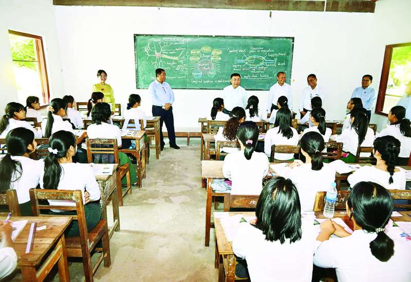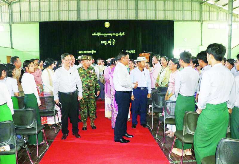 နိုင်ငံတော်စီမံအုပ်ချုပ်ရေးကောင်စီဥက္ကဋ္ဌရုံး ဝန်ကြီးဌာန(၁) ပြည်ထောင်စုဝန်ကြီး ဗိုလ်ချုပ်ကြီး မိုးအောင်သည် မန္တလေးတိုင်းဒေသကြီး ဝန်ကြီးချုပ်နှင့် တာဝန်ရှိသူများနှင့်အတူ ယနေ့နံနက်ပိုင်းတွင် မန္တလေးတိုင်းဒေသကြီး ပြင်ဦးလွင်မြို့ အမှတ်(၂) အခြေခံပညာအထက်တန်းကျောင်း၊ စာပန်းအိမ် ကိုယ်ပိုင်အထက်တန်းကျောင်းနှင့် အမှတ်(၃) အခြေခံပညာအထက်တန်းကျောင်း၊ မွန်းလွဲပိုင်းတွင် မဟာအောင်မြေခရိုင် ချမ်းအေးသာစံမြို့နယ် အမှတ်(၁၄) အခြေခံပညာအထက်တန်းကျောင်း၊ အမှတ်(၇) အခြေခံပညာအလယ်တန်းကျောင်းနှင့် အောင်မြေသာဇံမြို့နယ် အမှတ်(၂၁) အခြေခံပညာအထက်တန်းကျောင်းတို့တွင် စခန်းသွင်းသင်ကြားလေ့ကျင့်နေသည့် တက္ကသိုလ်ပါမောက္ခ၊ ဆရာ ဆရာမများ၊ အခြေခံပညာ ဆရာ ဆရာမများနှင့် ၂၀၂၅ ခုနှစ် တက္ကသိုလ်ဝင်စာမေးပွဲ ပြန်လည်ဖြေဆိုမည့် ကျောင်းသား ကျောင်းသူများအား တွေ့ဆုံအားပေးစကား ပြောကြားသည်။
