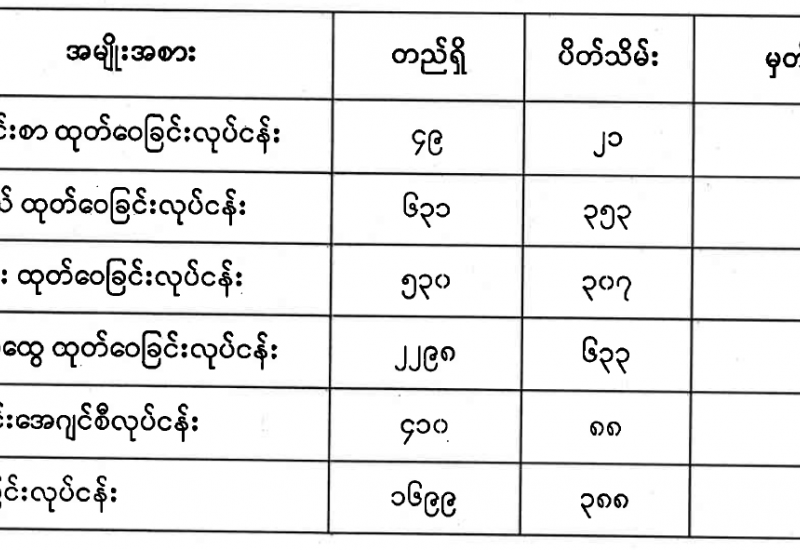 ပုံနှိပ်ခြင်းလုပ်ငန်း၊ ထုတ်ဝေခြင်းလုပ်ငန်း (သတင်းစာ၊ ဂျာနယ်၊ မဂ္ဂဇင်း၊ အထွေထွေ) သတင်းအေဂျင်စီလုပ်ငန်းများ ခွင့်ပြုထားရှိမှုနှင့် ထုတ်ဝေမှုအခြေအနေ (၃၀-၄-၂၀၂၅)