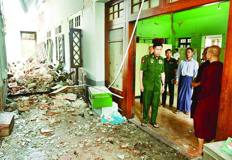 မြန်မာနိုင်ငံတွင် လှုပ်ခတ်ခဲ့သော မန္တလေးငလျင်ကြီးကြောင့် လမ်းတံတား၊ အဆောက်အအုံများ ထိခိုက်ပျက်စီးခဲ့ရသည့် နေရာများ၌ ကူညီကယ်ဆယ်ရေးနှင့် ပြန်လည်ထူထောင်ရေးလုပ်ငန်းများကို တိုင်းစစ်ဌာနချုပ်အသီးသီးမှ တပ်မတော်သားများ၊ မြန်မာနိုင်ငံရဲတပ်ဖွဲ့ဝင်များ၊ မီးသတ်တပ်ဖွဲ့ဝင်များ၊ ပြည်ပနိုင်ငံများမှ ကူညီကယ်ဆယ်ရေးအဖွဲ့များ၊ ဌာနဆိုင်ရာဝန်ထမ်းများ၊ လူမှုကူညီရေးအသင်း/အဖွဲ့များနှင့် ဒေသခံပြည်သူများပူးပေါင်း၍ အချိန်နှင့်တစ်ပြေးညီ ကူညီဆောင်ရွက်ပေးလျက်ရှိသည်။